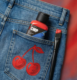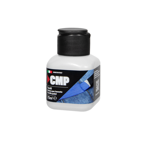 La pittura per tessuti Textil CMP è a base d’acqua e contiene un’elevata concentrazione di resine e pigmenti. Una volta asciutto, diventa permanente sul tessuto. Anche se applicato in strati più spessi, non screpola e rimane elastico.